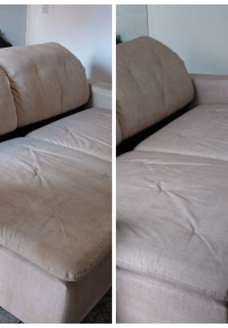 Nas imagens de antes e depois é possível observar a diferença que a higienização profissional de estofados proporciona. Manchas antigas, poeira acumulada e odores desagradáveis são removidos durante o processo de limpeza, devolvendo ao estofado uma aparência muito mais limpa e agradável.